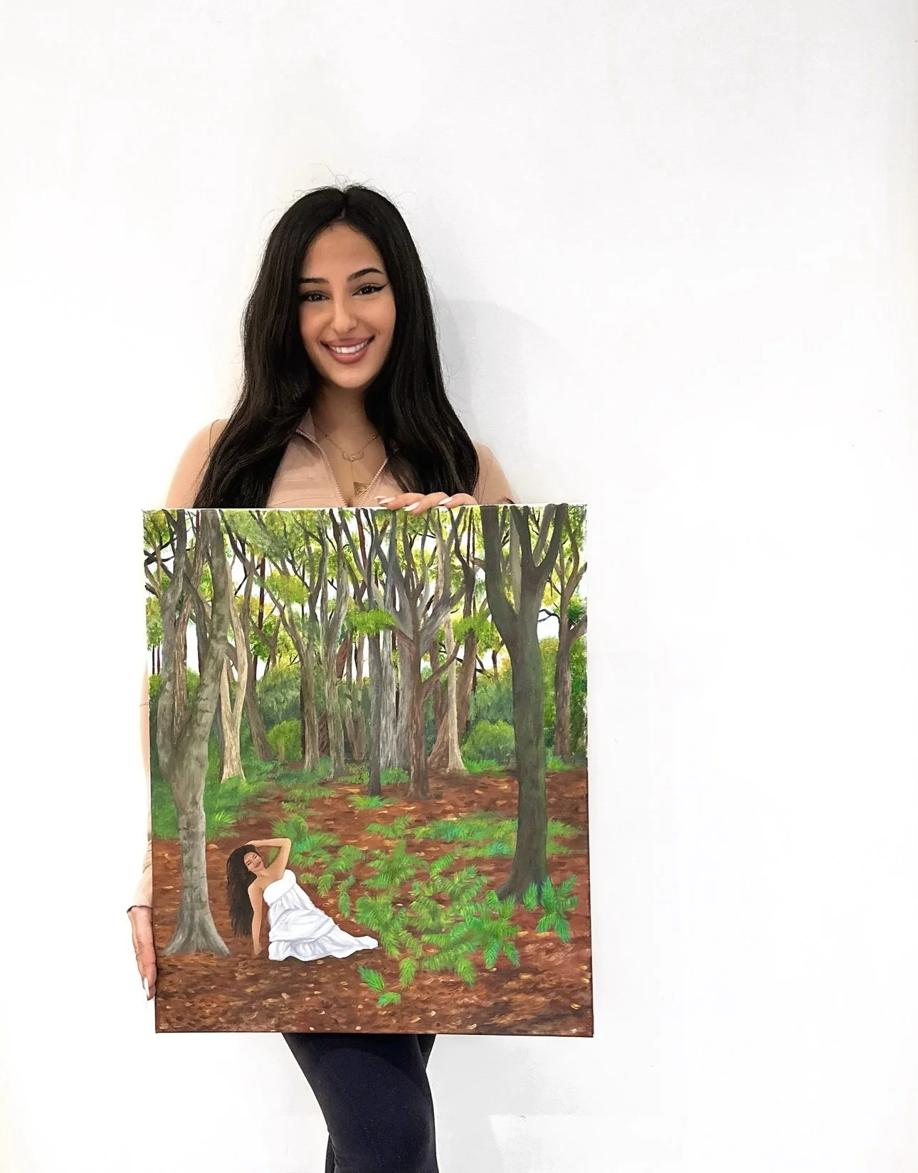 A lot of my practice is influenced by nature and the ocean. I’ve always been drawn to marine life, coral systems, and the scientific side of how ecosystems survive and collapse. My interest in marine biology and environmental preservation feeds directly into my work - not in a literal way, but in how I think about fragility, regeneration, and the impact humans have on natural spaces. I also explore the spiritual connection between women and nature, and how both move through cycles of growth, decay, and disruption. These ideas shape the worlds I create in my paintings.